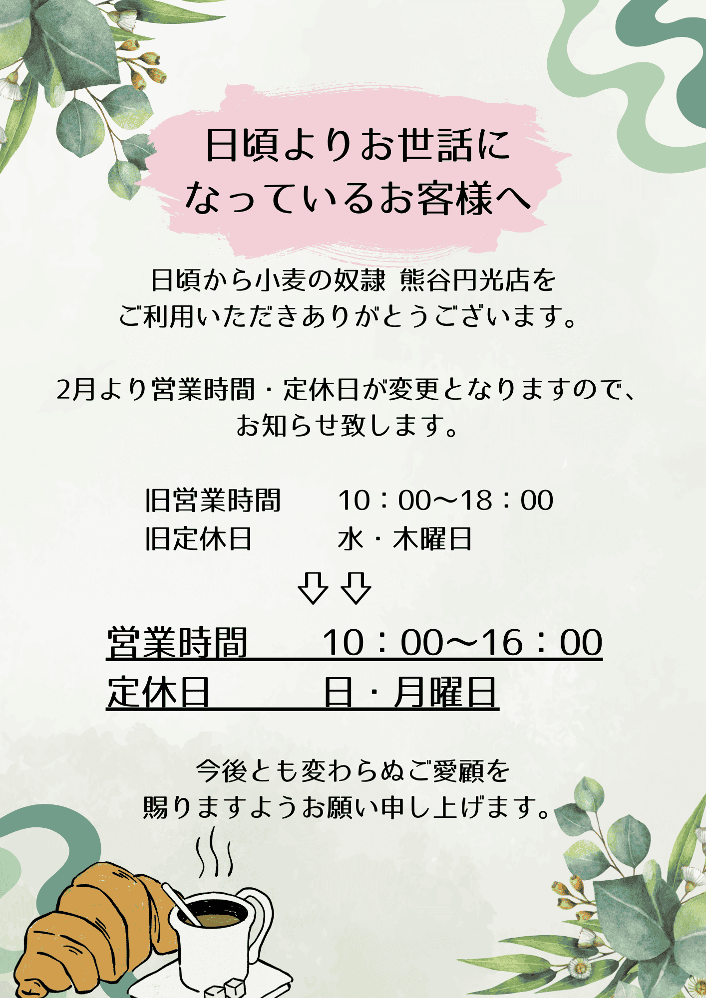【営業時間・定休日変更のお知らせ】